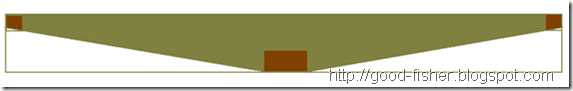 Из коротких брусков  40х120 выбрал подходящие по длине для нижней части шпангоутов и отпилил их по длине распорок. По центру каждого бруска сделал запилы для центрального бруса.image Расставил заготовки для шпангоутов на место распорок, выравнивая верхние их части   с верхней частью боковых брусов. Прикладывая лист оцинкованного железа к краю центрального бруса и к боковому брусу, прочертил линии для отпила на каждой заготовке шпангоута.  Циркулярной пилой выпилил нижние части шпангоутов, как показано на рисунке. Вновь расставил их  по своим местам и скрепил гвоздями с боковыми брусами.