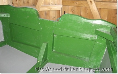 лодка под покраскуНо когда краска высохла, выяснилось, что стоит до неё дотронуться чем-либо, как она просто облезает целыми пластами. Пришлось мне эту краску обобрать. Хорошо ещё, что сделать это было несложно. Вычитал в интернете, что лучше покрыть металл эмалью, предварительно загрунтовав его специальной грунтовкой. Загрунтовал грунтовкой ГФ-201 серого цвета,  а когда  она хорошо просохла, покрыл эмалью ПФ-115. Так как цвета нужного в магазине не нашел, то пришлось смешать зеленую и серую эмаль. Эмаль на грунтовку легла неплохо, но при ударах  металлическими
